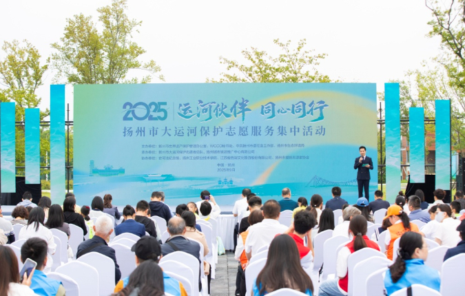 本次活动由扬州市世界遗产保护管理办公室、世界运河历史文化城市合作组织(WCCO)秘书处、扬州市委社会工作部、扬州市生态环境局联合主办,聚焦“生态保护”“文化遗产保护”和“文化传承”三大方向,发布涵盖河道清理、水质监测、生态修复、遗产点巡查、文物修缮协助、文化研学推广等多类志愿服务项目。现场为列入世界文化遗产名录的瘦西湖、个园、汪鲁门宅、卢绍绪盐商住宅、盐宗庙、天宁寺行宫、盂城驿、邵伯古堤、邵伯码头、刘堡减水闸10个大运河遗产点志愿服务队,以及“小青梅”青少年志愿服务队、“蓝湾卫士”青年志愿服务队、运河“船”说志愿服务队、绿色扬州环保公益团志愿服务队授旗,标志着大运河保护工作迈向社会化、组织化、年轻化的新阶段。